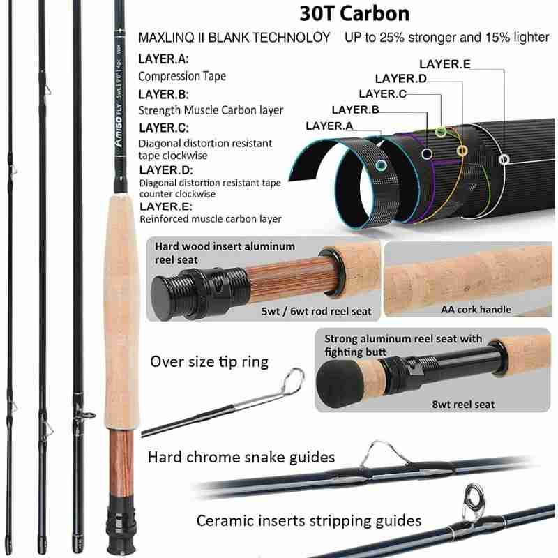 EXCLUSIVE MAXLINQ II BLANK TECHNOLOGY – Pure IM8 30T carbon fiber. With mixed 5 layers of carbon including Reinforced Muscle carbon layer for at least 25% increase in strength but 15% lighter in weight.