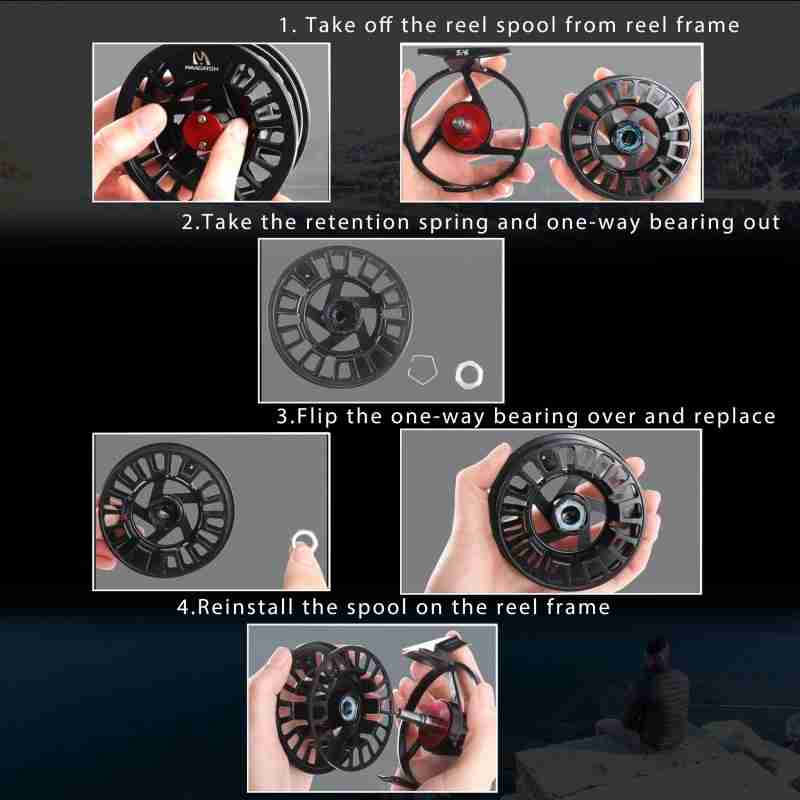 • One-way bearing for quick and easy left-to-right hand retrieval switch with no tools needed in 30 seconds