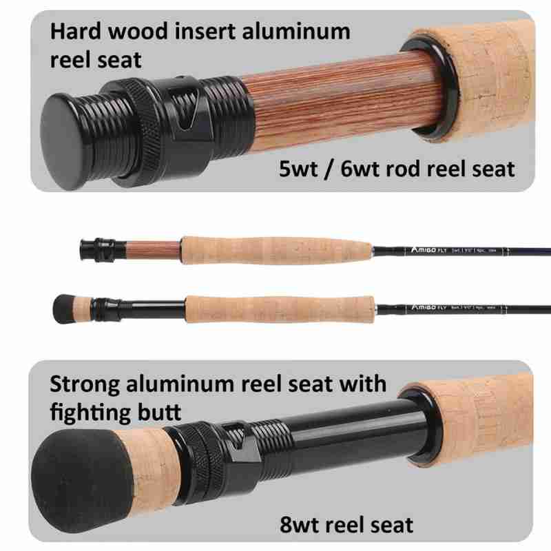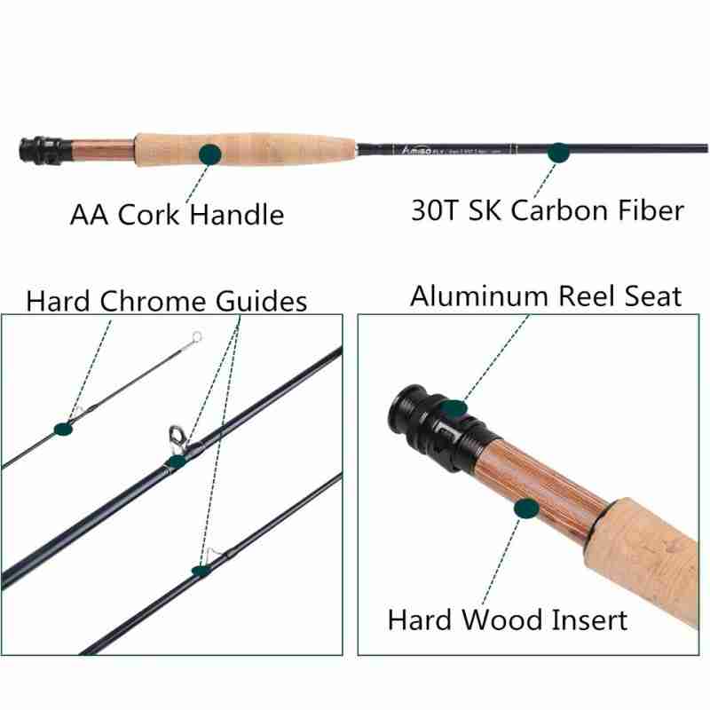 • Hard Chrome guides, AA cork handle, Hard wood insert aluminum reel seat.