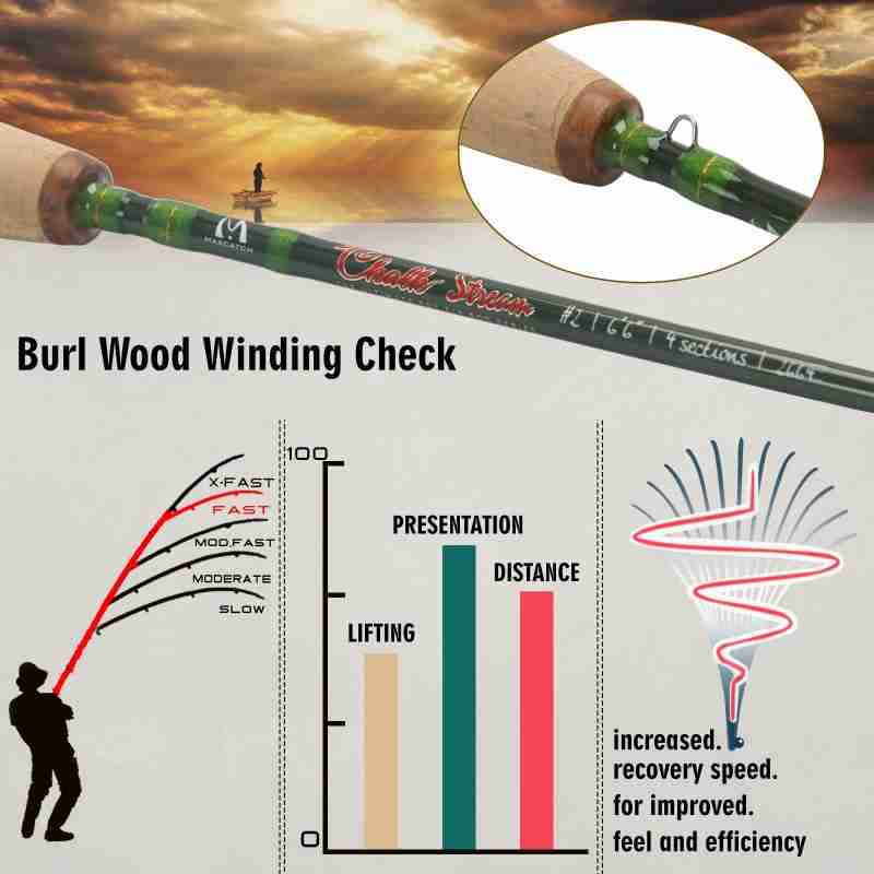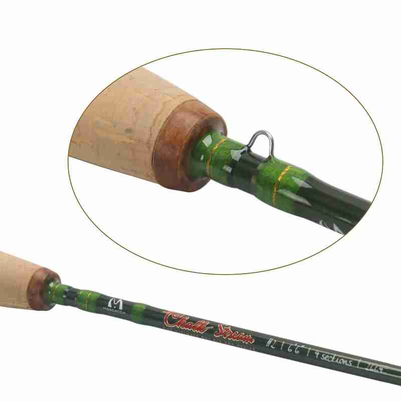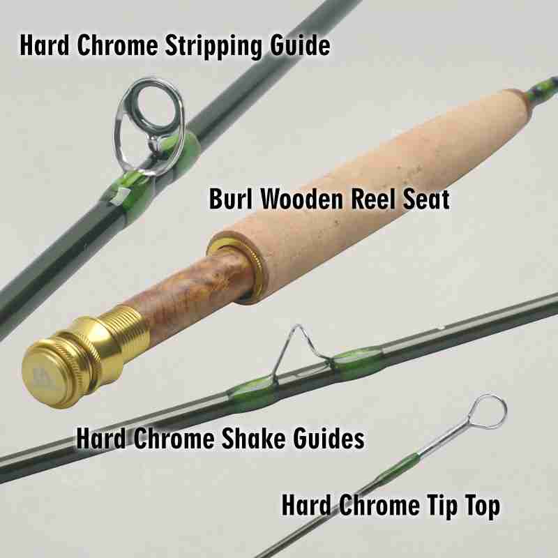 HIGH STANDARD SMOOTH GUIDES- Ceramic stripping guides,hard chrome snake guides for smooth gliding fly lines. PURE CORK HANDLE and REEL SEAT- Nature wood insert CNC Machined aluminum reel seat. A petite style pure AAAA grade natural cork handle increases friction for enhanced grip.