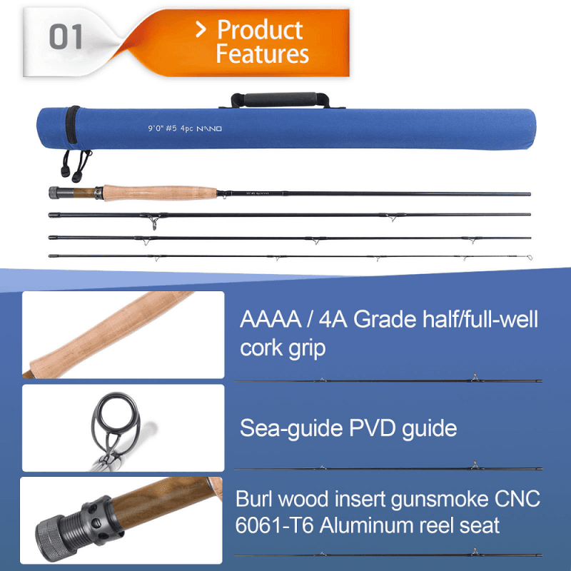 *DISTANCE and PRESENTATION – this is a very powerful but also easy to cast rod, more stable, easier loading power for higher line speed.Perform well loop control and line speed in both short and long distance. You will feel the power delivered to the palm of your hand,easily control the flies to the area you targeted