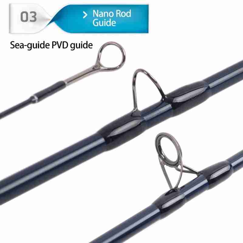 *HIGH STANDARD SMOOTH GUIDES – MaxSelect Sea-guide guides,Hi-grade solid Titanium frame with ceramic ring inserted, PVD coated stainless steel snake guides, and tip top for smoothest longer casting.
