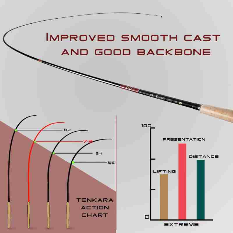 This “テンカラ”tenkara rod with a 7:3 action and 7 segments, this tenkara fly fishing rod gives lots of play,