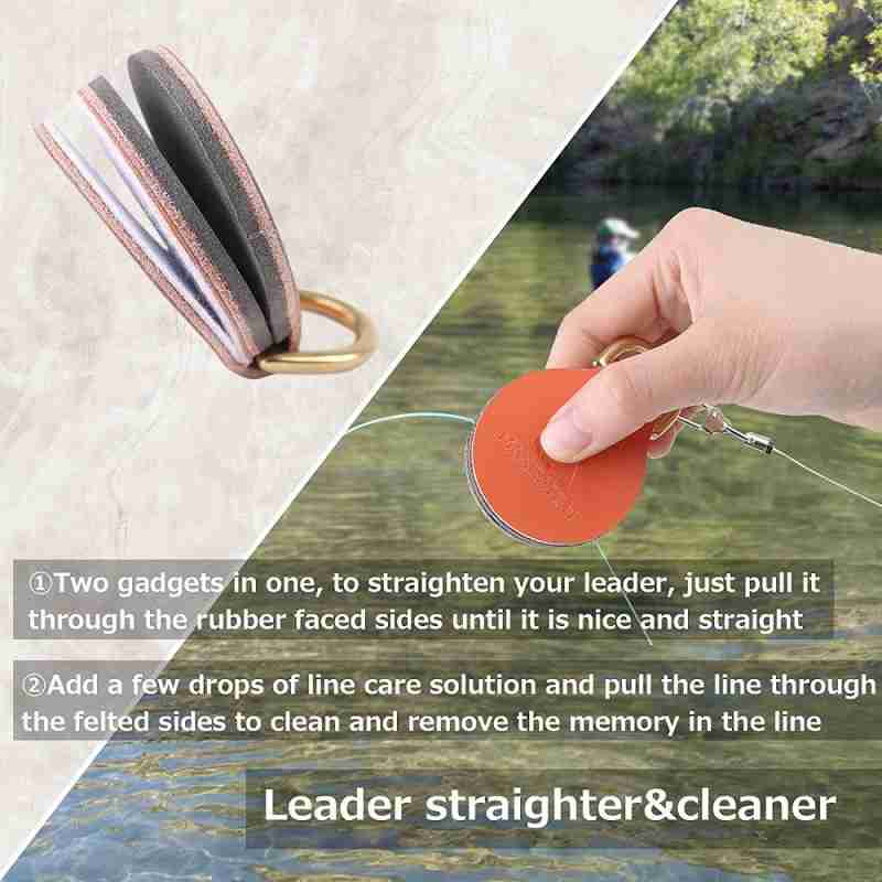 • LEADER STRAIGHTENER- Remove the memory in the line, clean dust/mud/sand from fly line, extend the service life