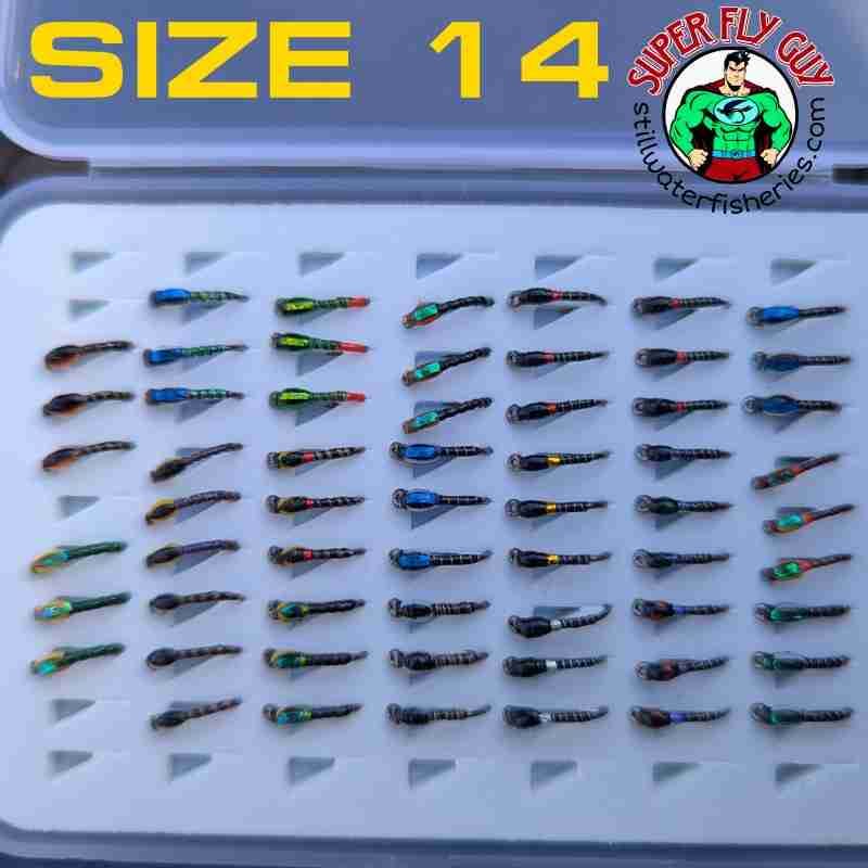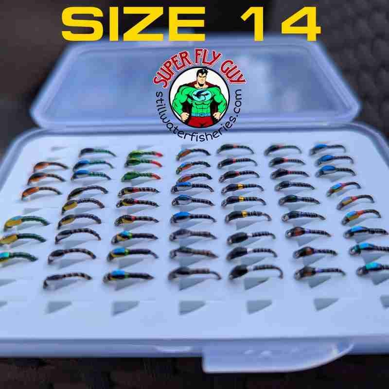Each box contains a total of 60 flies with 20 different patterns with 3 flies of each and available in Size 12 & 14.